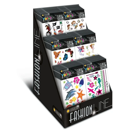 Tattoo klistremerker som er vannfaste, men enkle å vaske av. Produsert i EU og i samsvar med europeisk kosmetisk lovgivning.
