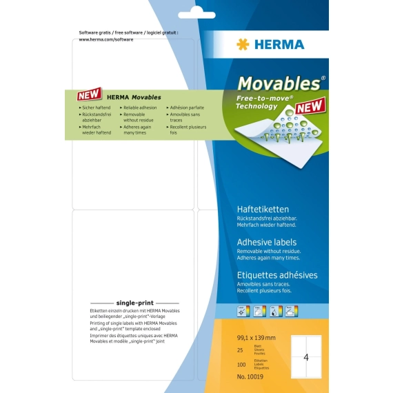 Disse fleksible, avtakbare Herma Special-etikettene kan fjernes uten å skade overflaten under.