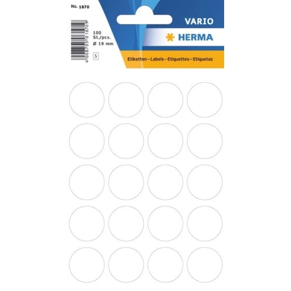 Herma Etikett Vario Ø 19 mm hvit
