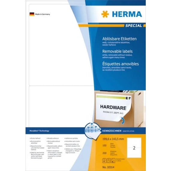 Stabilt festet med Movables®-teknologi, fester på alle slette, tørre og rene overflater. Helt avtagbare uten å etterlate seg rester. Perfekt for midlertidige merkinger eller for ømfintlige overflater. Til laser-, inkjet- og matriseskrivere, kopimaskiner, samt fargelaserskrivere.