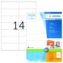 Selvklebende etiketter på A4-ark, permanent vedheft. Perfekt for alle laserskrivere og blekkskrivere, kopimaskiner, fargelaserskrivere og fargekopieringsmaskiner. Garantert å ikke henge seg opp i printeren, selv med høy hastighetsmaskiner takket være ekstra sterk spesiallaminat, perfekt flatlag og allsidig beskyttende kant. Feilfri utskrift på laserskrivere og blekkskrivere, testet og sertifisert av TÜV SÜD. Høy hvithet og jevn overflate for perfekt utskrift resulterer i svart-hvitt eller farge. Merkbart tykkere: Ekstra sterke etiketter - lett å påføre. Meget rask, pålitelig vedheft, selv på kjølige, fuktige overflater. Miljøvennlig og bærekraftig: Klorfri bleket, PEFC-sertifisert, løsemiddelfritt lim. Etikettene er 100% resirkulerbare, sorteres som for avfallspapir, emballasje laget av resirkulert papp. Gratis programvareløsninger: www.Herma.com/software.