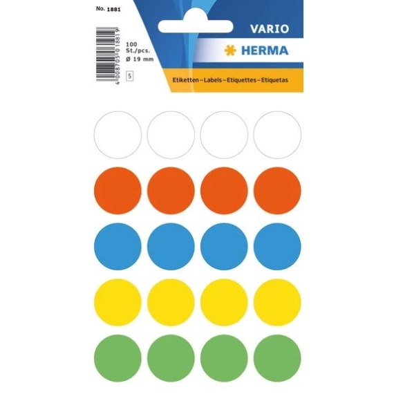 Herma Etiketter Vario Ø 19 mm ass.farger