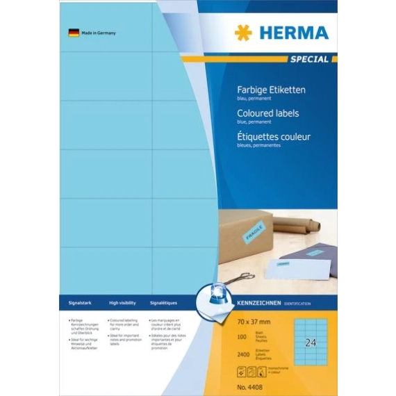 Permanent heftende etiketter for laser og inkjet skrivere samt kopimaskiner. Kan også brukes i fargelaser skrivere og fargekopimaskiner. FSC® Mix Credit sertifisert. Gratis software solutions: www.Herma.com/software. 20 ark per forpakning. 24 per ark. 480 etiketter.