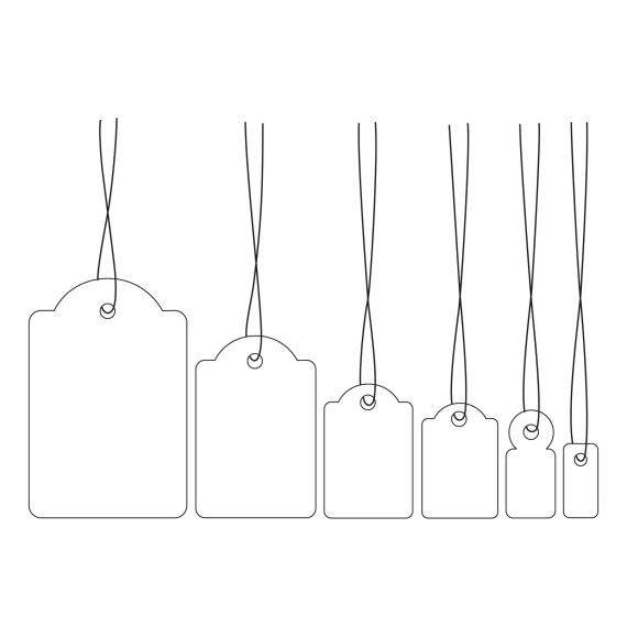 Hvit hengeetikett med hvitt snøre. 1000 per eske.