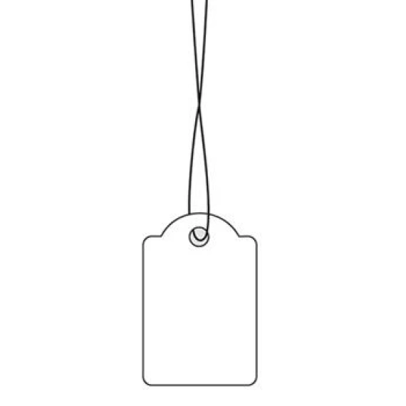 Hengeetikett med hvitt snøre. 1000 per eske.
