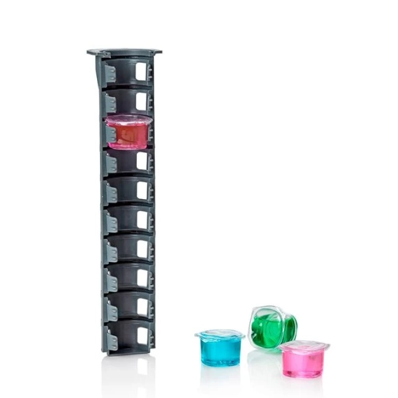 Holder for I-DOSE gulvrengjøringskapslene til I-mop. Holder opptil 10stk I-DOSE rengjøringskapsler, som gjør det mulig å fylle på hvor som helst. Holderen til rengjøringskapslene passer på innsiden av vaskemiddeltanken.