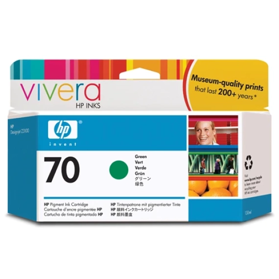 Utstyr din HP DesignJet Z 3100 eller Z 3200 med original HP Blekkpatron No.70 Grønn for utmerket utskriftskvalitet. Prøv i dag.