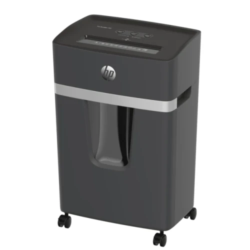 The intuitive operation of the HP Pro Shredder 15CC makes document shredding easy and safe. Even if you accidentally feed more than 15 sheets at a time, the reliable helper stops the shredding process and feeds the paper back to avoid a paper jam.In addition to the automatic start-stop function, which ensures that the shredder stops as soon as no further material is fed, it has an overload and overheating indicator. While the shredder doesn't have a technical level indicator for the collection bin, the large viewing window means you can always see when you need to empty the waste. Thanks to the pull-out collection bin, which has a capacity of 20 litres, emptying the shredded material is easy. Whether credit cards, paper clips or staples - they do not cause the modern office shredder any difficulties and do not have to be laboriously removed before shredding.So that your HP Pro Shredder 15CCshredder achieves a good cutting result, you should clean and maintain the cutting mechani