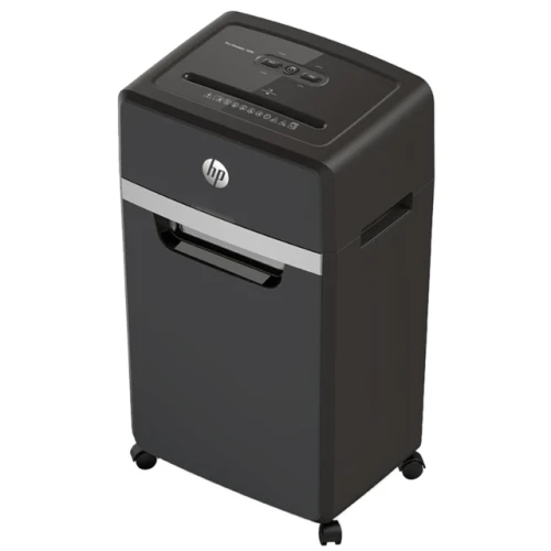 The HP Pro Shredder 16MC boasts a particularly long operating time of 40 minutes before it requires a cool down period. The generous waste bin for the shredded material has a filling capacity of 30 litres and is easy to remove for emptying. An LED indicates when the waste bin needs to be emptied or the box has not been inserted properly.Of course, the intuitive shredder has anti-paper jam technology that stops the shredding process and feeds the paper back if you attempt to shred more than 16 sheets at a time. In addition to the overheat and overload indicator, the modern shredder scores with an automatic start-stop function that ensures that the device stops as soon as you do not feed any more material. Have you forgotten to switch off your hard-working helper? No problem, because the office shredder automatically switches to sleep mode after 30 minutes and the power consumption drops to less than 0.5 watts.Credit cards, paper clips and staples are not an issue for this high-qu