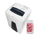Topp-makuleringsmaskin i HSM SECURIO P-serien med IntelligentDrive og berøringsskjerm. Denne kraftpakken med 205 liters oppsamlingsvolum bearbeider store papirmengder uten problemer og egner seg dermed godt til avdelinger.• Høykvalitets materialer og kvalitet „Made in Germany“ for sikkerhet og lang levetid. Med 3 års garanti.• Stålskjæreverk med livslang garanti tåler binders og stifter og garanterer for lang levetid.• For konstant høy kuttytelse: Den vedlikeholdsfrie makuleringsmaskinen har et integrert automatisk smøreapparat.• Det separate medie skjærebordet med oppsamlingsbeholder kutter uten problemer CDer/DVDer, kreditt- og kundekort, samt disketter i små partikler (4 x 7 mm). Det shreddede materialet kan kastes finsortert.• Det innovative drift og betjeningskonsept IntelligentDrive byr på 40% høyere ytelse. Du kan dessuten velge ett av tre driftsmodus: Silent for ekstra stille drift, standard med optimal gjennomstrømsytelse ved lav støyutvikling og perfo