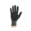 Ansell HyFlex 11-840 arbeidshanske velegnet til samling av små og mellomstore deler, mottak av råmaterialer samt av- og påskruing. Sterk slitemotstand, god komfort og smidighet gjør hansken ideell til medarbeideren med flere typer oppgaver. Primærindustrier: flyindustri, bilindustri, kjemisk industri, glassindustri, logistikk og lager, maskinteknikk, metallindustri, gruvedrift, transport. - Nylon/Spandex, belagt med nitrilskum - Uten silikon - FORTIX™ nitrilskumbelegg gir bedre ventilasjon - Standard - EN388: 2003 (4, 2, 3, 1), 2016 (4, 1, 3, 1, A): Fysisk og mekanisk påvirking på hansker. Fire obligatoriske egenskaper skal prøves: slitasjemotstand, skjærebestandighet, rivefasthet og punkteringsmotstand - Bruk: Generell håndtering, Presisjonshåndtering - Materiale: Spandex, Nylon - Belegningsmateriale: Nitrilskum - Beleggtype: Håndflate- og fingerbelegg - Størrelse : 11 - Tykkelse: Gauge 15 - Lengde: 20 cm - Vernehansker mot termiske risikoer (varme og/eller ild) (EN 407): X1XXXX - Matvarekontakt: Ja - Mekanisk risiko (EN 388:2016): 4131A - Silikonfri: Ja - Klassifikasjon: Kategori II - Standard 100 by Oeko-Tex Certified: Ja - Mekanisk risiko (EN 388): 4231 - Farge: Sort, Grå