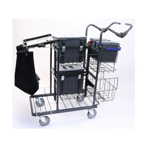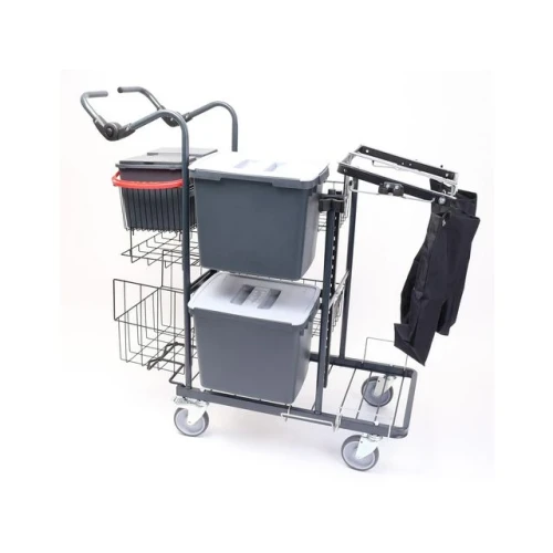 En slitesterk rengjøringsvogn er den ultimate løsningen for å effektivisere renholdsprosessen og sikre et gnistrende rent resultat hver gang. Enkel manøvrering, ergonomiske håndtak og intuitivt utstyrsplassering gjør at du kan fokusere på selve rengjøringen, uten unødvendige avbrudd. - Ideell for ulike sektorer - Mål: L112xB60xH109cm - Inneholder: 2 stk. skaftsholder med stativholder, 2 stk. plastbøtter 25L med lokk, 2 stk. 6L bøtte med flipplås, 3 stk. kurver med total lastekapasitet på ca. 80L, hylle for bla. avfallssekkruller, fire lange kroker, 2 stk. vaskeposer 23L, 125mm hjul, hvorav ett har brems.