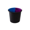 Rund avfallsbeholder på 14L i sort Det er en markert overflate tilpasset klistremerker. - Leveres med 2 stk 1,2 L innsatser. - 1 stk blå - 1 stk lilla.
