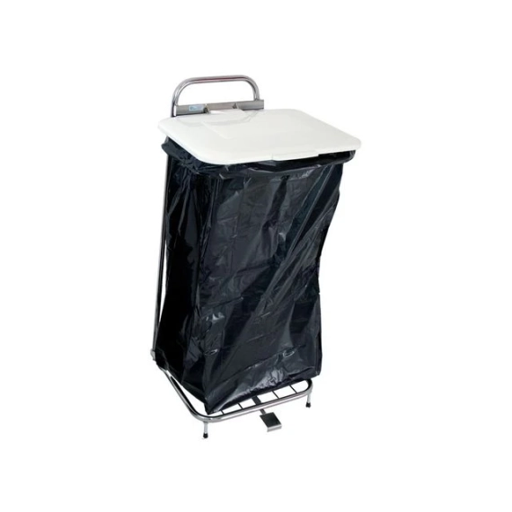 Det klassiske lokket og pedalholderen ERIK med hvitt plastlokk. ERIK passer i finere miljøer som sykehus, butikker og sterile miljøer. - Beregnet for 125-150L poser - Med hjul