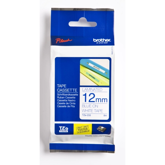 Lang levetid? Sikre holdbarhet med Brother P-Touch Tape TZE-233, blå på hvit, 12mm x 8m. Passer til Brother P-Touch 1000, 1010, 1280 VP, 1290 DT, 1830 VP, 2430 PC og mer. Utforsk serien.
