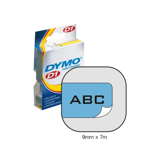 Dymo D1 Tape Sort på Blå 9mm (7m) S0720710