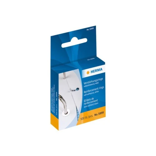 Disse selvklebende forsterkningsringene er slitesterke for forebygge eller reparere rifter i dokumenter rundt festehull. De er laget av en hvit plastfilm slik at dokumentene dine alltid ser ryddige ut, har en diameter på 12 mm, og er liten og elegant. Disse robuste, slitesterke Herma-forsterkningsringene er ideelle for skole og kontor.