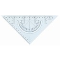 Med tusjkant, fasett og loddrett kant. Vinkelmåler med lupe over nullpunktet, tverrmålsinndeling. 0-punktet midt på hypotenusen. Spesielt godt egnet ved undervisning i geometri og tegning. Kan brukes til skravering, gradmåling, oppreising av normal og tegning av geometriske figurer. Materiale: glassklar SAN.