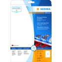 Hvite, matte etiketter på A4-ark, selvklebende. Slitesterke. Passer til vinduer, informasjons-og advarselsskilt, til lager og produksjon. Værbestandig overflate, motstandsdyktig ovenfor UV-stråling, olje og skitt. Tåler temperaturer mellom -30°C og +80°C. For laserprintere og kopimaskiner. Ikke for Inkjetprintere.