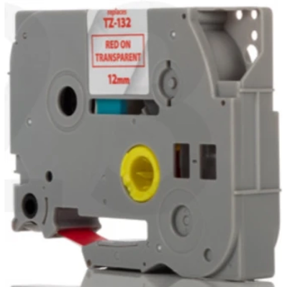 Yaha TZE-132 P-Touch Tape Rød på Klar 12mm (8m), erstatter Brother TZE-132