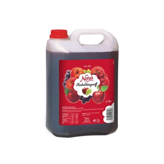 5-liters kanne med Nora Husholdningssaft. Nora Husholdningssaft er en fruktig, fyldig og sødmerik saft laget på druer og epler. Kjent og populær smak. Perfekt format for storbrukere. Kan brukes som drikke eller i mat. - Ingredienser - Råsaft 50% (drue 46%, eple 4%), sukker, surhetsregulerende middel (eplesyre), konserveringsmiddel (kaliumsorbat, natriumbenzoat). - Laget fra konsentrat - Blandingsforhold: 1 del saft + 4 deler vann