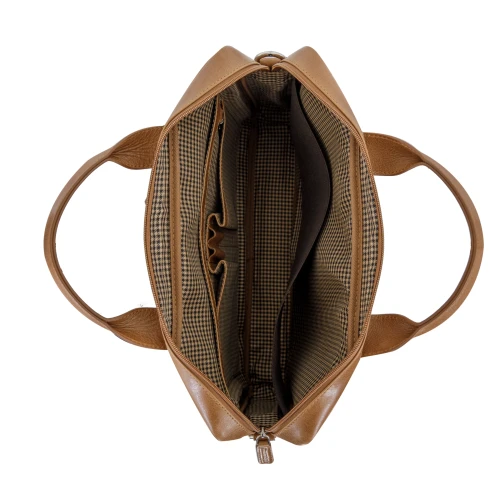 With it's streamlined, classic design featuring structured comfort-hold handles, padded detachable and adjustable leather shoulder strap, external zipped pocket and is finished with silver detailing. The lined interior has two main compartments, one section padded for an up to 15 Laptop/MacBook and an additional section for documents. You´ll also find multiple storage and easy access for your phone, pens, business cards and notes. Designed in Denmark by a Climate Positive Company, protect your devices and the planet with this feature-rich eco-friendly bag. Handcrafted from luxurious full-grain leather, this bag will develop a beautiful patina with use and is lovingly created from sustainable long-life materials for those looking to bring effortless style, protection, and organisation to their everyday lives.