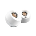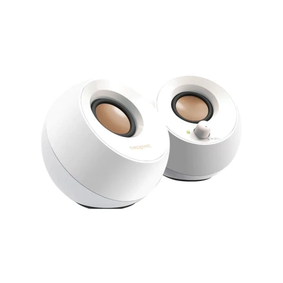 Inspired by the zen Japanese rock garden, the orb-shaped Creative Pebble is a sleek and elegant 2.0 speaker system that looks perfect in any home and office. It features a 45° elevated sound stage for enhanced audio projection and is powered by a single USB cable for hassle-free music entertainment. X Marks the SpotFeaturing a 45° elevated custom-tuned far-field driver solution, the Creative Pebble directs audio to your ears, placing you in the sweet spot for great audio enjoyment. Small but MightyWith its built-in passive radiators and an impressive combined RMS of 4.4W, the small Creative Pebble is able to deliver balanced audio with depth, immersiveness and crystal clear details. Simply connect your device via the 3.5mm input and get ready to be blown away. Convenience Within ReachInstantly control your volume with the Pebble's convenient front panel control knob. No Desk Space? No ProblemMeasuring at only 4.4 inches wide each, the Creative Pebble can be conveniently pla