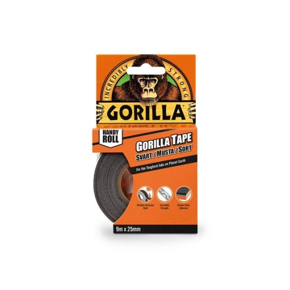 Er enn smidigere og litt smalere versjons av GORILLA Tape, kun 25mm bred. Den tar verken mye plass eller veier mye. Den har de samme fantastiske egenskapene som øvrige Gorilla Tape. Perfekt å ha med i vesken eller ryggsekken. - Dobbelt limlag - Ekstra forsterket vev - Slitesterk overflate som tåler det meste -