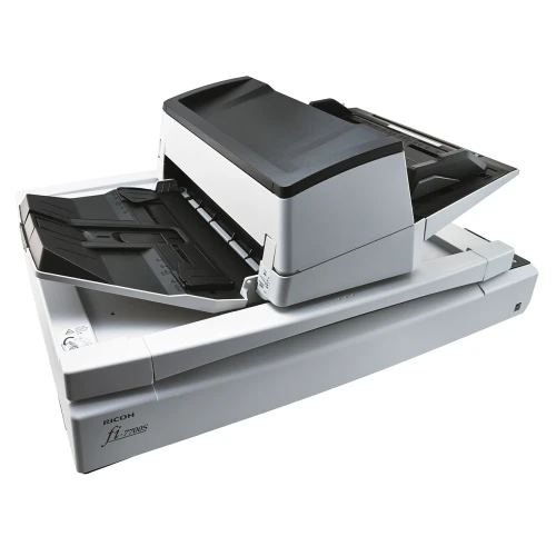 Heavy-duty & flexible production scanner for professional use The fi-7700S allows you to scan A4 landscape documents at 75 ppm (200/300 dpi). The scanner is suitable for continuous scanning because it allows you to load up to 300 sheets at a time which improves efficiency when scanning a large volume of documents. In addition, various types of documents, such as thin paper, plastic cards, books, magazines, envelopes, and long page documents can be scanned on this scanner. Fast scanning — up to 75 ppm in color or monochrome, landscape Paper chute capacity up to 300 sheets Capable of handling various thicknesses and sizes Paper Protect function which protects against paper jams by detecting anomalies in sound (iSOP: Intelligent Sonic Paper Protection) and document length Flexible design and LCD panel for easy operation Independent Side Guides for easily aligning mixed size documents
