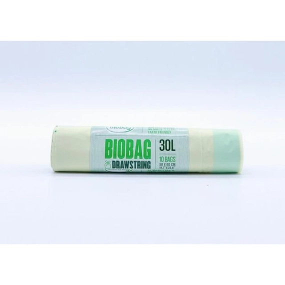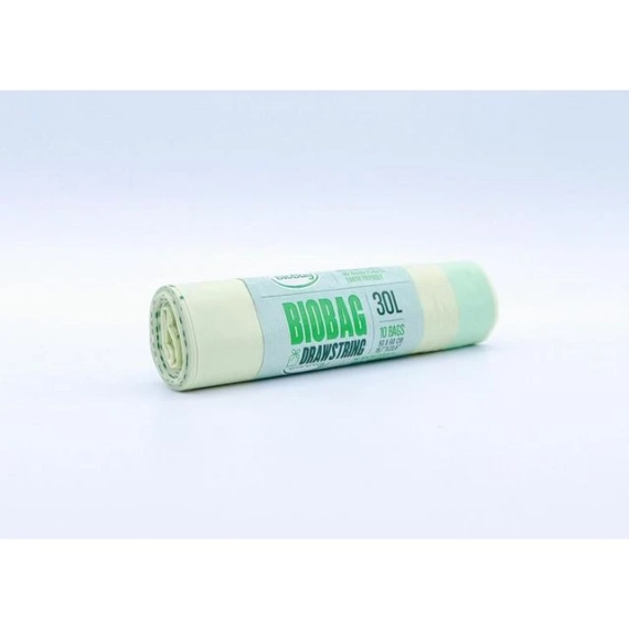 BioBag 30L er avfallsposer med snor som er fullstendig komposterbare og biologisk nedbrytbare. Fordeler: Poser med snor er enkle og hygeniske i bruk. Perfekt for mellomstore pedalbøtter eller innebygde avfallsenheter. Sterke snorer som ikke vil ryke når de trekkes i. Sertifiserte I henhold til den europeiske standarden EN 13432 og OK industrial compost. Egnet for mat og hageavfall. Pustende poser som ferbedrer hygiene og reduserer behovet for rengjøring av bøtter. - Størrelse: 500 x 600 mm - Tykkelse: 25my