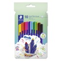 triplus® color 323 Triangular fibre-tip pen •In ergonomic triangular shape for relaxed and easy writing and colouring. •Stable, pressure-resistant tip. •Ventilated cap conforming to ISO 11540 and BS 7272-1/2. •DRY SAFE - can be left uncapped for days without drying up, except neon colours. •Water-based ink. •Washes easily out of most textiles. •PP barrel and cap guarantee long service life. •Housing made of 97 % recycled plastic. •Line width approx. 1.0 mm. Carton box with 10 triplus color in assorted colours