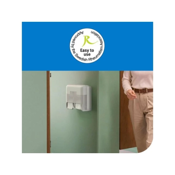 Tork OptiServe® er et dispensersystem for hylsefritt toalettpapir med høy kapasitet som passer for steder der effektivitet, bærekraft og gode gjesteopplevelser er viktig. Systemet er et bedre alternativ enn konvensjonelt toalettpapir og tradisjonelle jumboruller, og det store utvalget av dispensere betyr at en rekke ulike behov kan dekkes med samme type toalettpapir. Rullene med toalettpapir fra Tork OptiServe har plass til tre ganger mer toalettpapir enn konvensjonelle toalettruller. De har verken hylser eller innpakning, noe som fører til mye mindre avfall. - System: T7 for mid-size toalettrull hylsefri - Høy kapasitet med plass til fire kompakte ruller – fyll på sjeldnere og spar tid - Betjener opptil 290 gjester - Sertifisert «Easy to use» for brukere og renholdere - Berøringsfritt, automatisk bytte av rull for bedre hygiene - Papirfliken er lett å finne – brukerne slipper å ta hånden inn i dispenseren for å lete etter papir - Størrelse: H17,4xB31,9xD32,3cm - Materiale: ABS plast