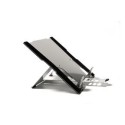 Stativ til laptop i lettvektsaluminium med gummi/anti-slip føtter. Enkel å justere i 7 forskjellige høydeinnstillinger; 9-22cm. Kan klappes sammen og kan lett tas med overalt. Passer til notebook opp til 16,6”. Dimensjoner: 6 x 275 x 300 mm. Vekt: 320 g. Se demo