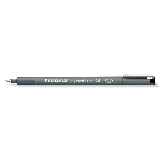 Fineliner PIGMENTLINER til skriving, skisser og tegning. Lang metallspiss, ideelt for bruk med linjaler og sjabloner. Lysekte og vannfast, trenger ikke gjennom papir. Dokumentegte og perfekt til signering på mange underlag slik som kreditkort, pass m.m. God til Zendoodeling og scrapbooking. Kan ligge uten kork i opp til 18 timer uten å tørke ut . Fåes i 12 strekbredder og inneholder sort blekk. Strekbredde 0.6 mm, sort. Art nr.308 06-9