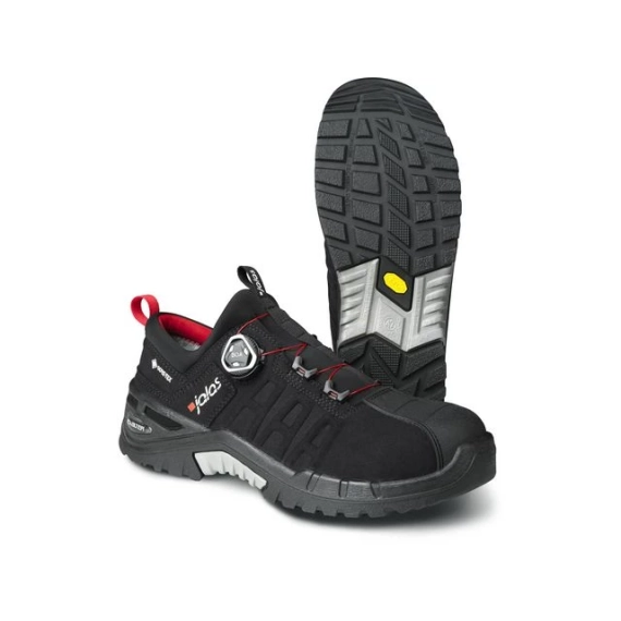 En lett, komfortabel vernesko med sidemontert BOA. Vanntett takket være GORE-TEX. JALAS tåhette i aluminium, spikertrampbeskyttelse i plasmabehandlet tekstil samt doble støtdempingssoner i PORON® XRD®. Overdelen i mikrofiber og den sokkelignende konstruksjonen gir utmerket komfort og passform, og har antistatiske egenskaper. Yttersålen i nitril er varme- og oljebestandig for utmerket grep. - Jalas Exalter tilhører verneklasse S3 - Sertifisert i henhold til EN ISO 20345:2011 SRC, HRO (Varmebestandig yttersåle test 300¿), WR (Vantette sko) - Vanntett - Materiale for overdel: mikrofiber, tekstil - Normal passform
