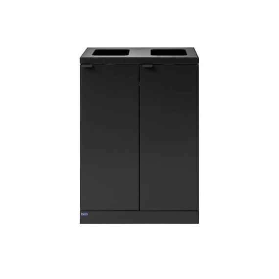 Elegant avfallssystem med 2 inndelinger i stilig design. Dette er et fleksibelt avfallssystem fra Bica som sørger for enkel og brukervennlig avfallssortering på arbeidsplassen. Avfallssystemet er utformet med 2 fraksjoner med åpne innganger. Kombiner og tilpass etter behov med andre avfallsbeholdere fra Bica S30-serien. FUNKSJONER Avfallssystemet er utstyrt med frontdører med soft close for ergonomisk riktig tømming uten tunge løft. Avfallssystemet er utstyrt med integrerte og sterke poseholdere, slik at posen holder seg på plass. Lokket skjuler også posene, slik at avfallssystemet holder et stilig design. Avfallssystemet er mobilt takket være de monterte hjulene, som er skjult bak sokkelen. DESIGN Alle modellene i Bica Series S30 kan tilpasses og kombineres etter behov ved hjelp av kraftige magneter. For å oppnå høy hygiene og minimalt vedlikehold er avfallssystemet laget av pulverlakkert stål. Det stilige designet og de rene linjene gjør det til en avfallsbeholder som naturlig kan integreres i interiøret. Innendørs bruk Serie: S30 Farge: Antrasitt Størrelse (H x B x D): 84,5x30x30 cm Minimum posestr: 65x90 cm