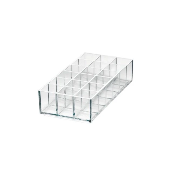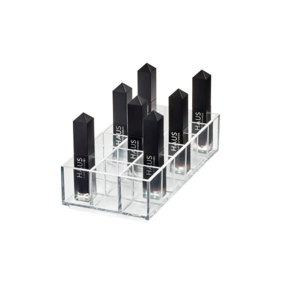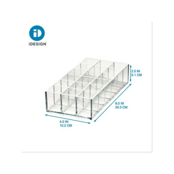 Får orden på leppestiftene med oppbevaring fra Sarah Tanno Collection av iDesign. Designet for å være like stilfull som funksjonell. Oppbevaringsbrettetpasser pent i skuffen og kan stables og settes i sammen med andre i Sarah Tanno kolleksjonen for å lage en tilpasset layout som passer dine unike behov. De ulike rommene sørger for at leppestifter og lipglossen står oppreist og holdes på plass, for best mulig oversikt. - Blank finish med hvit matt kant. - Består av slitesterk, BPA-fri plast. - Totalt 18 rom. - Mål: 10,2x20,3x5,1 cm - Kun håndvask.