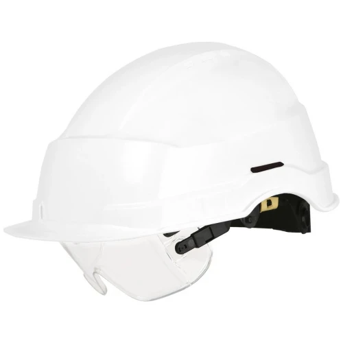 IRIS II HiVis vernehjelm kombinerer sikkerhet, komfort og praktiske detaljer i én smart løsning. Den har integrert oppfellbart visir i polykarbonat, som gir klart syn og plass til egne briller perfekt i krevende omgivelser. Det ventilerte skallet i slagfast ABS gir god luftsirkulasjon, og lufteventilene kan åpnes eller lukkes etter behov. 6-punkts innredning med rattjustering sikrer komfortabel og presis passform (str. 5363cm), mens kort brem gir bedre synsfelt. Med svettebånd, regnrenne og klargjorte slisser for øreklokker (30mm), er dette en komplett vernehjelm for profesjonell bruk enten du jobber inne eller ute i all slags vær. Hjelmen er sertifisert i henhold til EN 397 (inkl. -3¿°C), og visiret oppfyller kravene i EN 166 kl. 1F, EN 172 og EN 169. - Integrert oppfellbart visir med plass til egne briller - Ventilert ABS-skall med åpne-/lukkbare lufteventiler - 6-punkts innredning med rattjustering - Kort brem og plan front - Klart til øreklokker 30mm slisser - Svettebånd og regnrenne - Farge: Hvit - Vekt 410g - Leveres uten hakebånd - Sertifisering:EN 397 med tillegskrav for lav temperatur (-30°C), Visirene samsvarer med EN 166 kl. 1F, EN 172 og EN 170