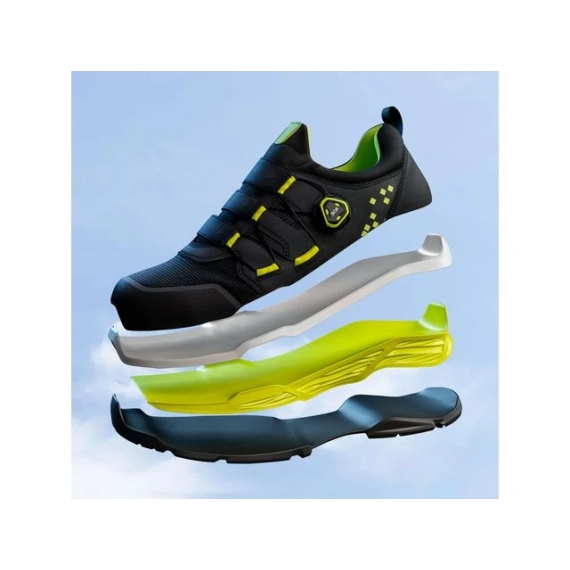 En pustende vernesko med høy beskyttelse. Spikertrampbeskyttelse i myk tekstil, tåhette i aluminium og myk og komfortabel såle. En pustende vernesko med høy beskyttelse. Optimal mykhet og komfort takket være Three In One-sålen, som forebygger langvarige fot- og ryggskader. De nettdekkede ventilasjonsåpningene gir ekstra luftsirkulasjon. Tri-Panel BOA® Fit System gir en perfekt passform for individuelt formede føtter. Skoen har en tåhette i aluminium og spikertrampbeskyttelse i myk tekstil. - Godkjent i henhold til standarden for Personlig verneutstyr - Vernesko EN ISO 20345:2011 SRC - Beskyttelsesklasse S1: Sko med lukket tå- og hælkappe og støtdempende hæl - Oljebestandig yttersåle med antistatiske egenskaper - ESD-godkjent.