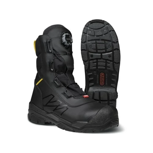Denne høye vernestøvelen er laget for virkelig krevende forhold. Den har ekstra bred passform, fôr i teknisk fleece og BOA Fit System. Bruk den der vanlige vernesko kommer til kort. JALAS 1508 Gran Premio har FX2 Pro innersåle med PORON®XRD® for støtdemping, yttersåle i nitrilgummi for utmerket grep på kalde eller glatte underlag, en stabiliserende fotbue for sikkert grep i stiger, spikertrampbeskyttelse i stål og tåhette i aluminium. - Jalas Gran Premio tilhører verneklasse S3 - Sertifisert i henhold til EN ISO 20345:2011 SRC, HRO (Varmebestandig yttersåle test 300¿), CI (Kuldeisolerende test -20¿), HI (Varmeisolerende test 150¿) - Vintermodell - Vannavvisende - Romslig passform - Materiale for overdel: PU-behandlet lær.