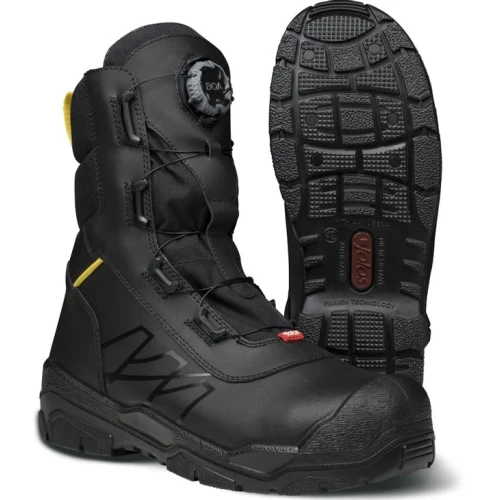Denne høye vernestøvelen er laget for virkelig krevende forhold. Den har ekstra bred passform, fôr i teknisk fleece og BOA Fit System. Bruk den der vanlige vernesko kommer til kort. JALAS 1508 Gran Premio har FX2 Pro innersåle med PORON®XRD® for støtdemping, yttersåle i nitrilgummi for utmerket grep på kalde eller glatte underlag, en stabiliserende fotbue for sikkert grep i stiger, spikertrampbeskyttelse i stål og tåhette i aluminium. - Jalas Gran Premio tilhører verneklasse S3 - Sertifisert i henhold til EN ISO 20345:2011 SRC, HRO (Varmebestandig yttersåle test 300¿), CI (Kuldeisolerende test -20¿), HI (Varmeisolerende test 150¿) - Vintermodell - Vannavvisende - Romslig passform - Materiale for overdel: PU-behandlet lær.