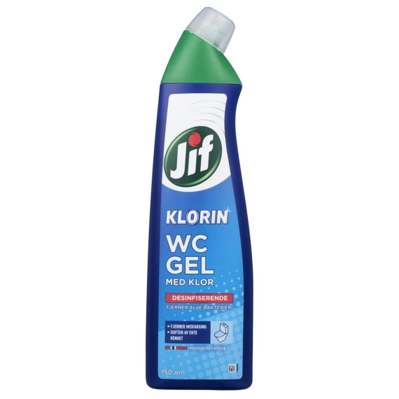 Klorin WC-gel inneholder klor for effektiv rengjøring og fjerning av misfarging og alle bakterier. Etterlater toalettet skinnende rent. - Fare- og sikkerhetsinformasjon: - H290 Kan være etsende for metaller - H314 Gir alvorlige etseskader på hud og øyne - H410 Meget giftig, med langtidsvirkning, for liv i vann