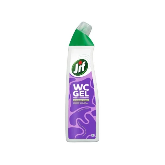 Jif WC-Gel gjør det enkelt å vaske toalettet skinnende rent. Og ja - den fungerer også til rengjøring av dusj, dusjdører og flisene i dusjen. Helt Bad Ass! WC-gelen har en effektiv og tyktflytende formulering, som sikrer lengre kontakttid med overflaten for å enkelt fjerne smuss, skitt og kalk. Uten klor og med en lav pH-verdi. Frisk duft av grønne stikkelsbær. pH-verdi: 2,1 Fare- og sikkerhetsinformasjon: H319 Gir alvorlig øyeirritasjon