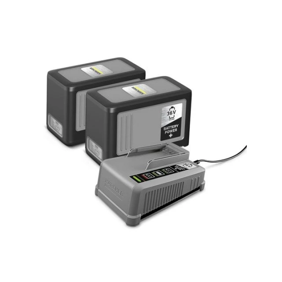 Startpakke Battery Power+ 36/75 inkluderer to 36 V/7,5 Ah-batterier med innovativ sanntidsteknologi, som tillater uavbrutt arbeid med alle Kärcher 36 V Battery Power og Battery Power+ batteriplattformer. Settet kommer med en kraftig hurtiglader med lang levetid, som sørger for dette. Mens det andre batteriet er i bruk, kan ett av batteriene lades. Kompatibel med alle 36 V Kärcher Battery Power+ utskiftbare batterier. 36 V Batteriplattform Ladetid for batteri med hurtiglader: 81min (80%) Lengde på ledning: 1,2m Vekt: 6kg Mål: L31,6xB18,1xH23,2cm