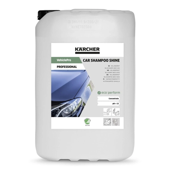Alkalisk hovedvaskemiddel for rengjøring av alle typer kjøretøy. Passer utmerket til manuell rengjøring og etterlater en ren og skinnende overflate. Brukes forsiktig på nylakkerte eller sensitive metall- og plastoverflater. Produktet er høykonsentrert og skal blandes med vann avhengig av tilsmussingsgrad og utetemperatur. - Bilshampo for rengjøring av alle kjøretøy - Alkalisk middel - Volum: 25l