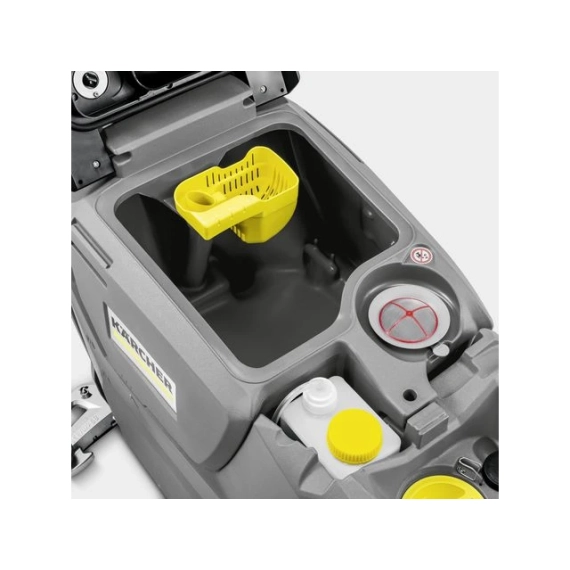 Kärcher B 50 W Bp er en kompakt og robust gulvvaskemaskin som gjør rengjøringen til en lek. Med kraftig batteri, automatisk dosering av rengjøringsmiddel og smarttelefonstyring via 'Machine connect'-appen, får du effektiv rengjøring med minimal innsats. B 50 W Bp gir deg: - Enkel håndtering: Kompakt design og god manøvrerbarhet - Effektiv rengjøring: Kraftig børste og perfekt oppsuging - Tidsbesparelse: Auto-fyll og auto-skyllefunksjon - Kostnadsbesparelser: Nøyaktig dosering av rengjøringsmiddel - Smart kontroll: Styring og overvåkning via app - Perfekt for rengjøring av bygninger, i butikker og offentlige bygninger - Egnet til rengjøring av gulv i kantiner, på skoler og sykehus - Til vedlikeholdsrengjøring i f.eks. offentlige bygninger Dobbelt diskbørstehode Arbeidsbredde børste: 60cm Arbeidsbredde oppsug: 85cm Tankkapasitet: 50L Batteri: vedlikeholdsfritt 24V 115Ah Driftstid: 3t Ladetid for batteri: ca. 10t Kjørehastighet: maks 6 km/t Snubredde: 140cm Lydnivå: 65dB Mål (LxBxH): 1280x636x1082mm Leveres med batteri og lader