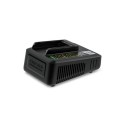 Hurtiglader for 18 V/ 2.5 Ah utskiftbart batteri. Lader opptil 80% på bare 44 minutter, og kan brukes på alle batterier i 18V Battery Power batteriplattform. I tillegg har batteriladerens kabinett integrert veggbrakett. 18V batteriplattform Vekt: 0,6kg Mål: L18,4xB13,3xH8,8cm)