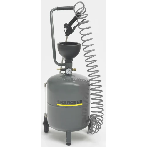 Mobil kjemisprøyte i lakkert stål med to hjul.