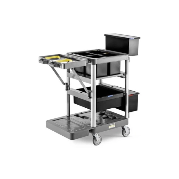 Som en kompakt og åpen rengjøringsvogn er Flexomate Tralle FM Expert 50/P spesielt godt egnet for bruk med forkondisjoneringsmetoden. Avfallsmodulen kan flyttes opp og ned etter behov og kan romme søppelinnlegg i forskjellige størrelser. Rengjøringsredskaper kan enkelt oppbevares i de fire 6-liters bøttene og separeres etter område. Ekstrautstyr kan oppbevares i en 16-liters uttrekkbar skuff som kan plasseres etter behov. Dette reduserer ekstra reiser frem og tilbake i rengjøringsprosessen. Takket være FlexiLink-koblingene som følger med, kan moppsystemer, gripere og andre nyttige redskaper også bæres. FlexoLink XL er egnet for å feste et varselskilt eller WVP 10 Adv. Både Toolflex-koblingene og kroken kan festes på utsiden av FlexoMate etter behov. Hengende bøtte og skuffer kan enkelt tas av for å spare plass ved oppbevaring av trallen.