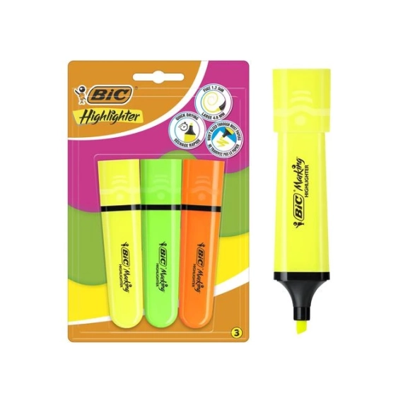 Tydelige markeringer med BIC Brite Liner i tre farger. BIC Brite Liner tekstmarker gir deg fleksibilitet med tre assorterte farger. De brede og smale linjevalgene gjør det enkelt å fremheve viktig informasjon. Perfekt til kontor- eller skolebruk med vannbasert blekk og praktisk design. - Assorterte farger for allsidig markering - Skrå tipp for linjebredder fra 1,2mm til 4,6mm - Pakke med 3 markører - Slitesterk plastkropp